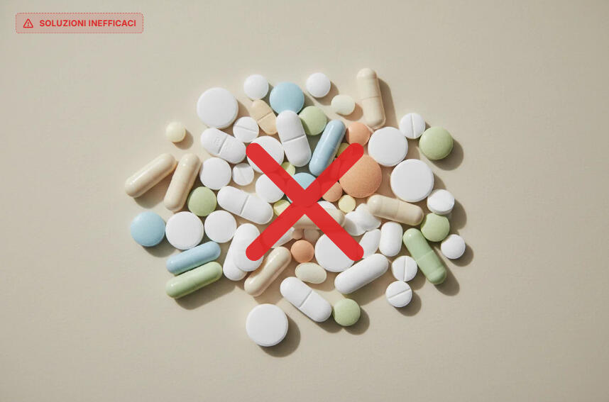 ✓ Decompressione a 26 gradi — toglie la pressione dai nerviSeparati danno sollievo temporaneo. Insieme agiscono sulla causa.