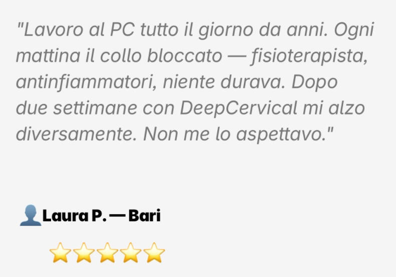 I migliori risultati sulla cervicale cronica si ottengono combinando tre elementi insieme:✓ Calore profondo — rilassa i muscoli contratti in profondità